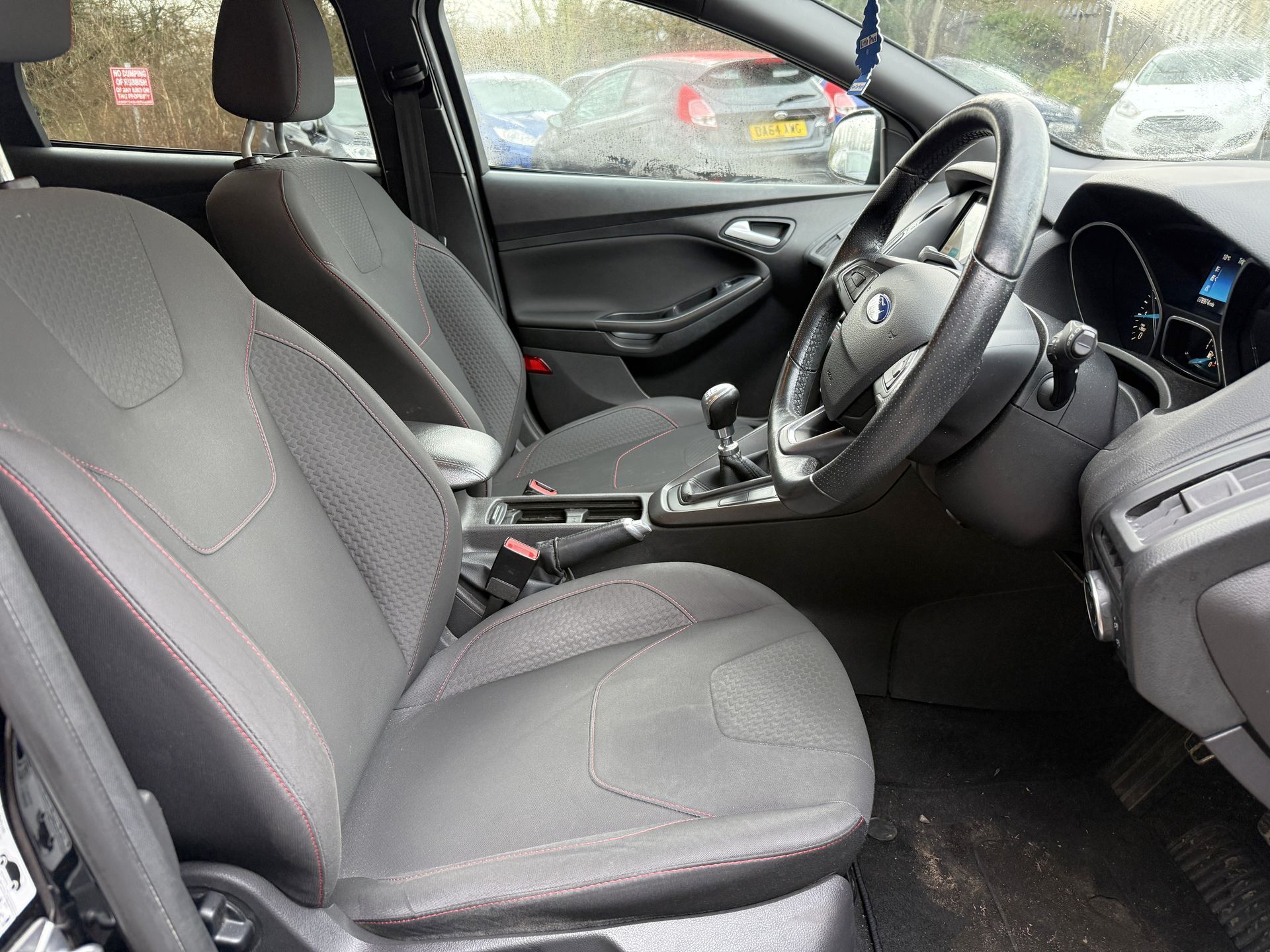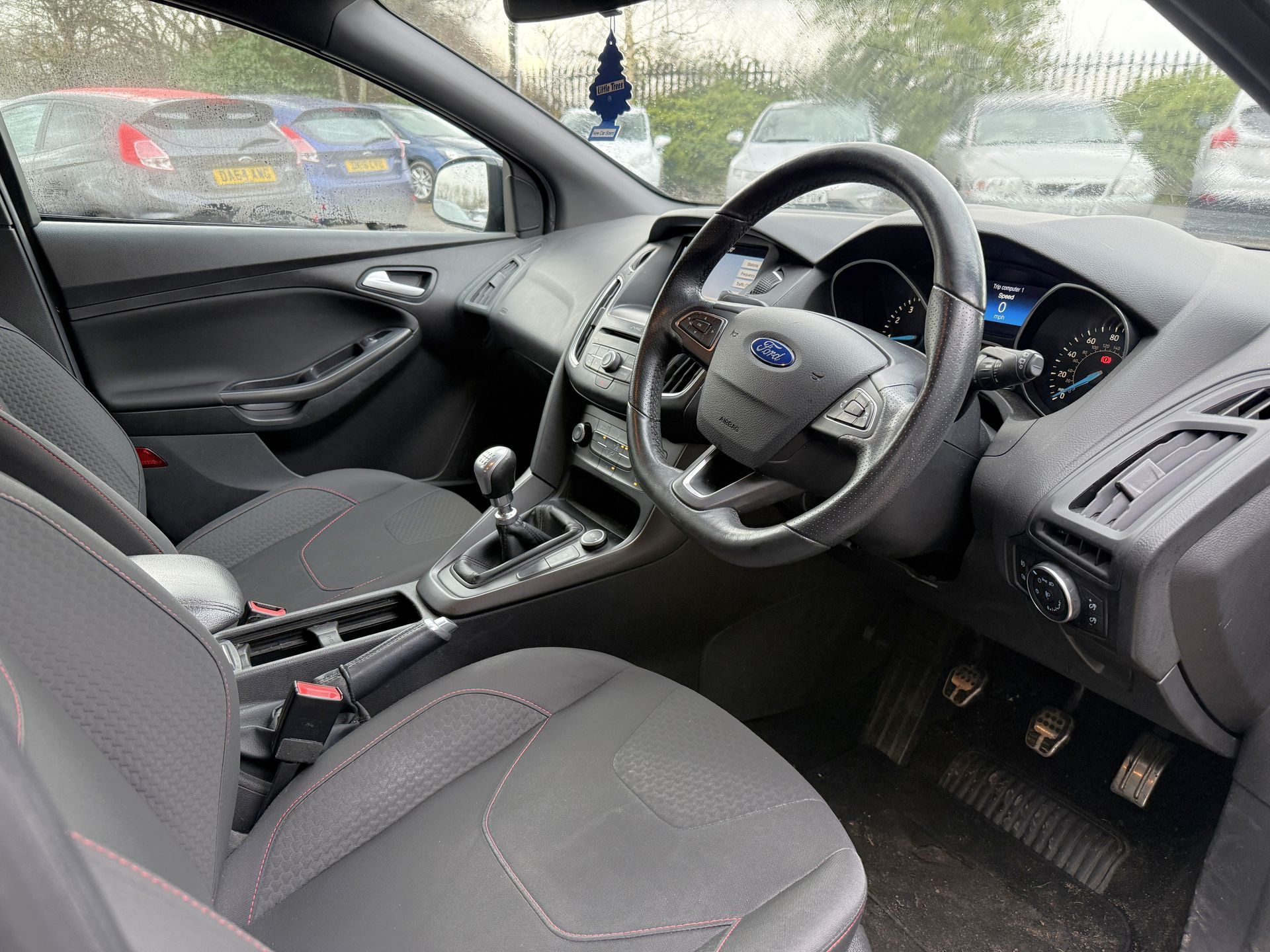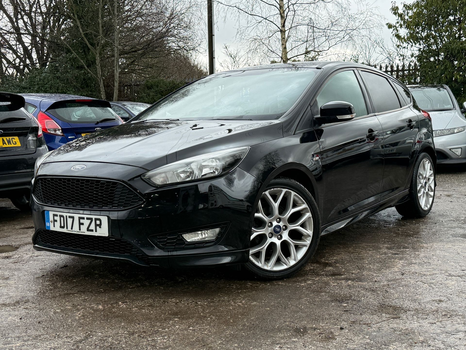 This Focus ST Line looks great in Absolute Black paint with App Pk 2 upgrade (18" alloy wheels, rear privacy glass, DRL front lights). It is also just group 11 insurance so attainable for the younger driver. Comes with Sync 3 8inch touch screen with built in sat nav, Apple CarPlay/Android Auto, DAB radio, bluetooth voice control, bluetooth audio, ST Line leather steering wheel, air conditioning, heated front screen, electric mirrors, electric windows, trip computer, hill start assist, traction control, tyre pressure monitor, push button start, 2 x remote keys, premium centre console with armrest/storage compartment, 60/40 split folding rear seats and full factory fitted bodystyling kit inc rear spoiler. Viewing is by appointment on 07426 862829.
