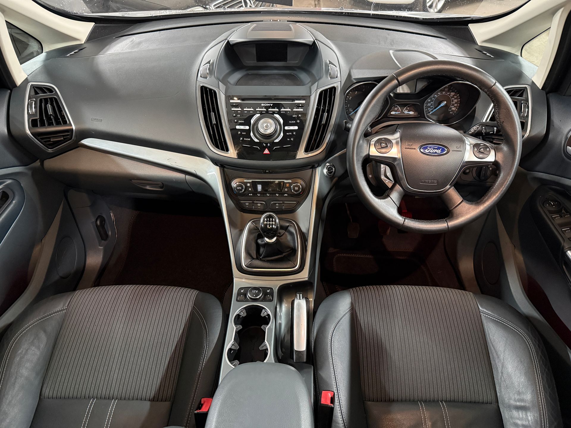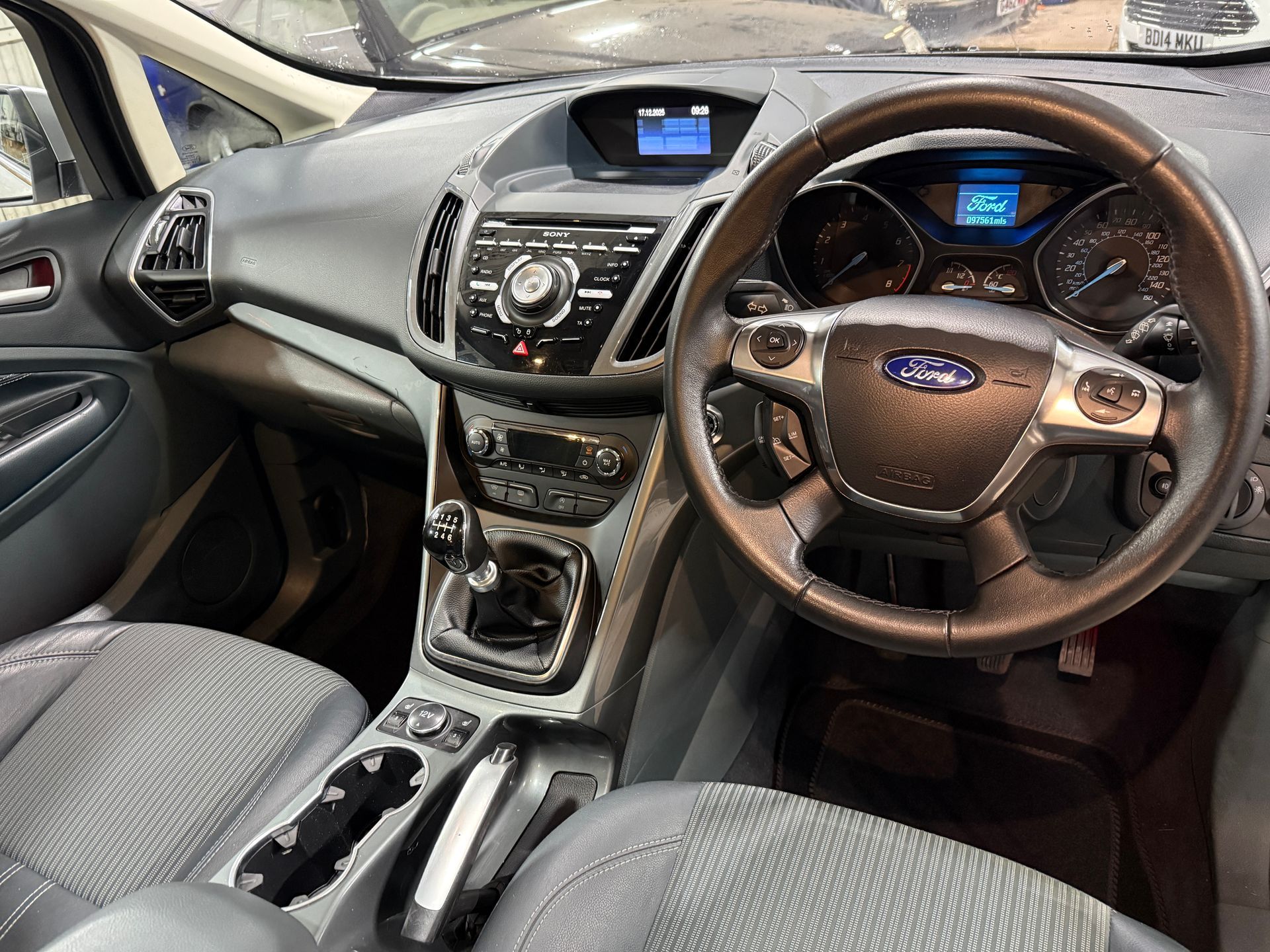 This lovely C-MAX comes with the awesome 1.6 turbo engine that is shared with the sporty Fiesta ST. It provides plenty of power (0-60 in just 8.5 seconds) and returns good fuel economy of up to 53 mpg. This example is finished in Moondust Silver metallic and comes with half leather interior, heated front seats, electric driver seat adjust, dual zone digital climate control, cruise control,, xenon headlights, auto headlights, rain sensing wipers, ambient lighting, push button start, panoramic roof with electric curtain blind, front seat centre console with armrest/storage compartment, Sony DAB radio with premium speakers, USB port, bluetooth voice control, power fold door mirrors, electric windows all round, remote central locking, 2 x remote keys, 40/20/40 split/folding/removable rear seats for maximum luggage space, spare wheel, jacking tools and rear privacy glass. Viewing is by appointment on 07426 862829.